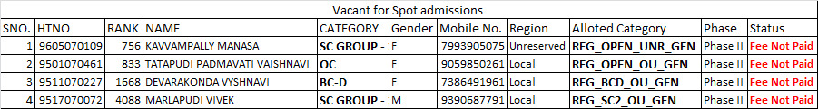 M.Tech I Year – Vacancy Positions for Spot Admissions (Academic Year 2025–26)